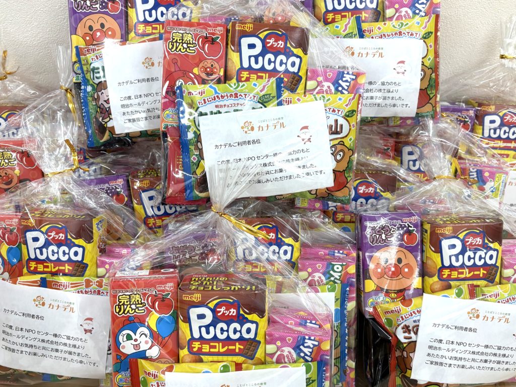 このたび、明治ホールディングス株式会社様より、株主優待制度を通じてお菓子をご寄贈いただきました。Instagram 株主の皆さまの「笑顔の役に立てれば」「無理をせず、一日一日を大切に」というあたたかな想いが込められたお菓子は、カナデルの利用者の皆... -